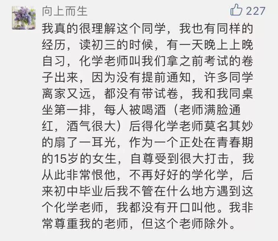 另一派认为,老师该打——一切的根源来自于当年老师对学生的体罚,给他的心灵留下了阴影,老师没有基本的师德,所以自食其果,就该接受惩罚。