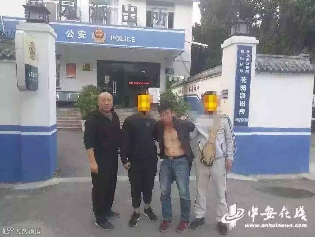 这张照片是王强和同事刚刚抓捕了一名盗窃嫌疑犯后,在派出所门口拍的。他们熬了两个通宵,有些憔悴。
