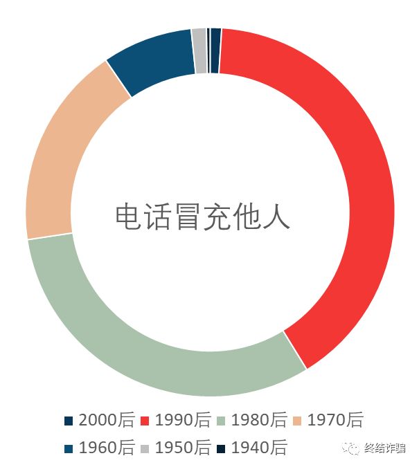 6.电话冒充企业、电话冒充他人:这两种手法,以40后(70岁左右)受害人为最多,因为他们处于退休后时期,有充足的时间接听电话,且不熟悉网络防范意识较差,但有一辈子的积蓄,是骗子的最爱。