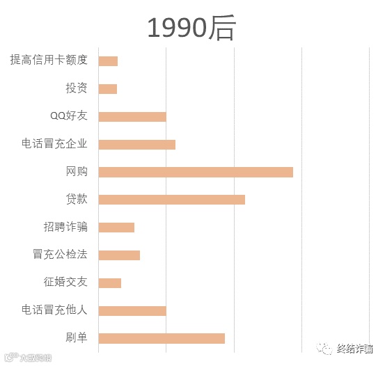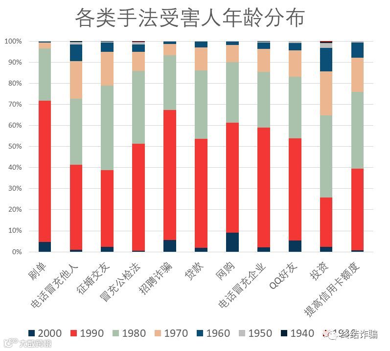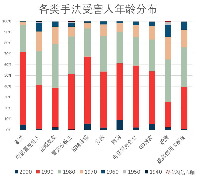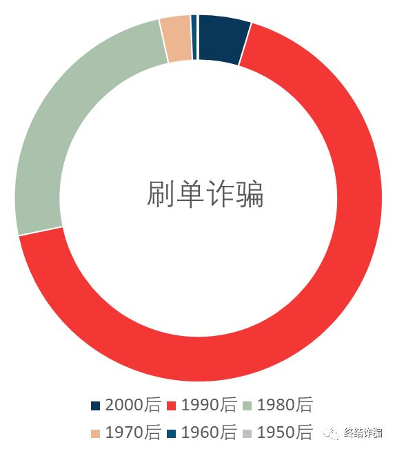 5.刷单诈骗:以00后、90后为主,70后以上年龄几乎不会被骗。