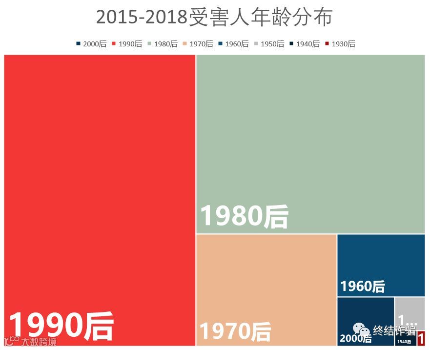 可以看出,排除人口基数因素,90后依然是诈骗受害的最多群体,其次是80后、70后、60后……