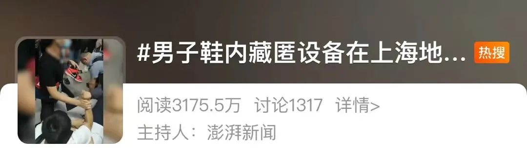 2021年10月8日18时许,上海市公安局轨道公交总队反扒支队民警江涛在巡逻中看到一个男子形迹可疑,时不时用脚伸向女乘客的裙底方向,“当时我就觉得很奇怪,但是没有证据,然后跟踪了几站地铁,直到到了成山路地铁站。”