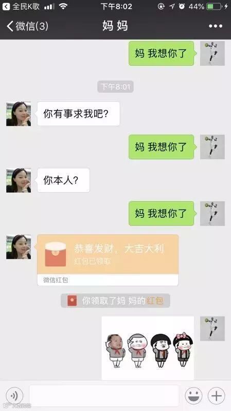 ▲高冷的老妈,直接简单粗暴地打钱…发红包,果然是治愈一切的良药。