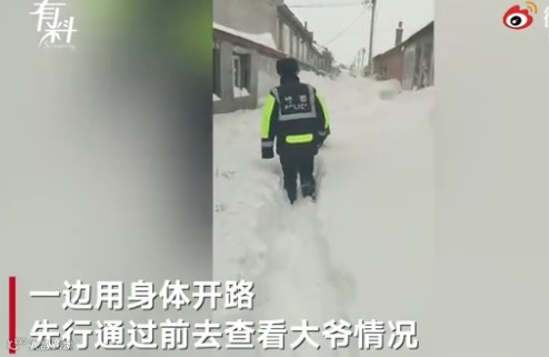 1、民警积雪中用身体为病人开路 近日,黑龙江双鸭山暴雪过后,一位大爷在家中突发疾病急需救援。由于积雪过多,救护车无法通过。为争取时间,民警一边组织铲雪,一边用身体开路查看病人情况。最终,将大爷及时送上救护车。(@我们视频暖心闻)