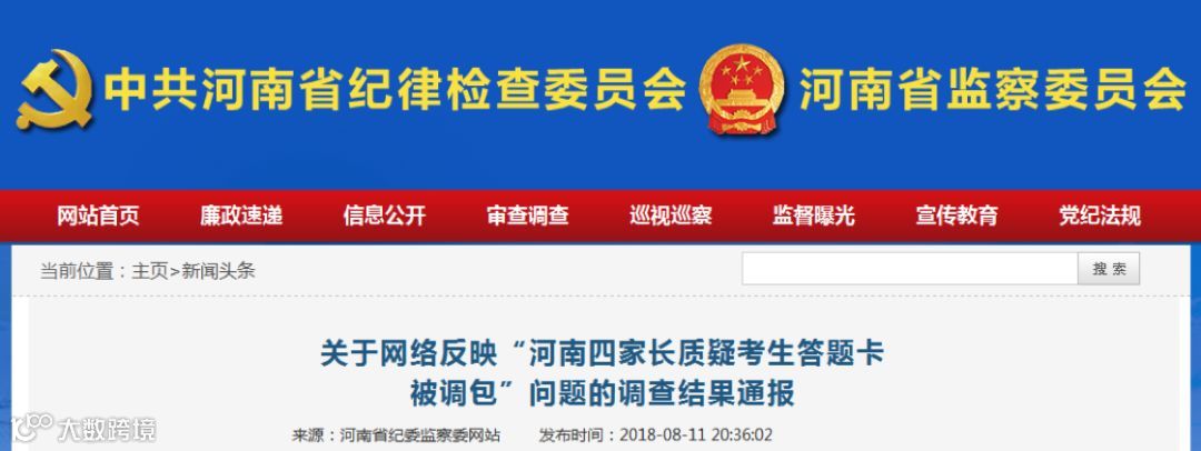 11日,河南纪委监察委的通报“高考答题卡掉包”调查结果: