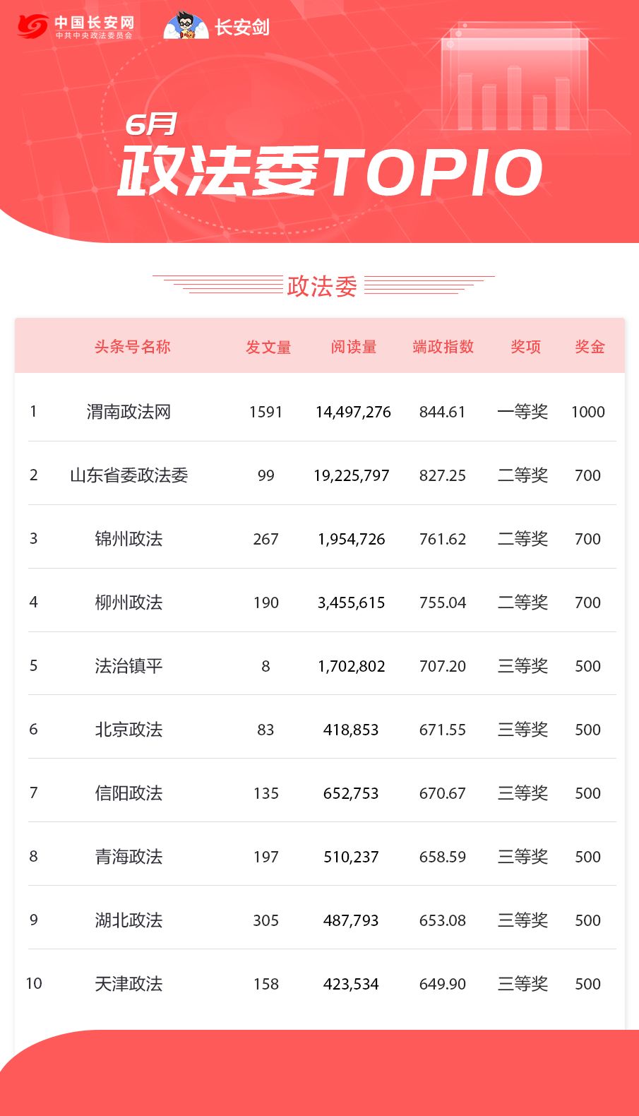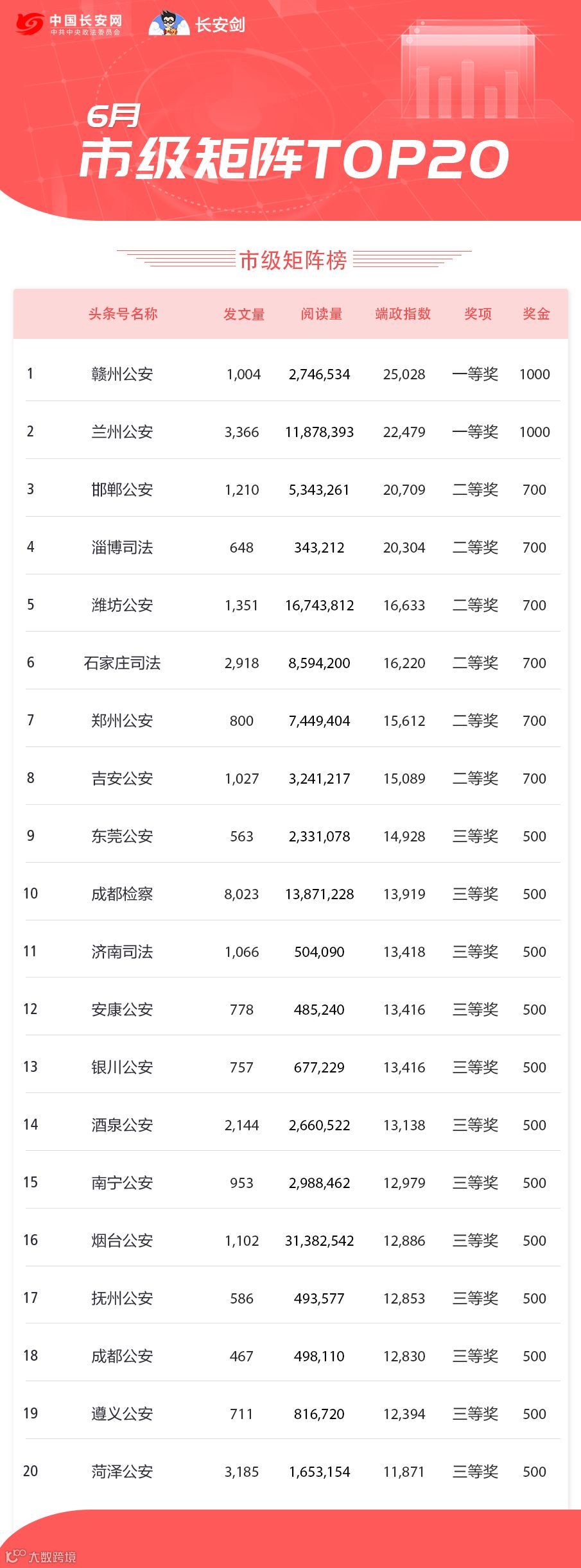 “端政指数”是综合考量单个政务头条号在一段时间内发表的图文、视频、直播、微头条、问答等内容的数量,结合每条信息的阅读量、收藏量、分享量、评论量等指标,并综合考虑平均阅读量、平均收藏转发量等十余项指标,同时使用原创度、千次阅读涨粉量进行修正后,加权计算得出的数值。可以较为客观地反映每个政务头条号在某段时间的整体质量。