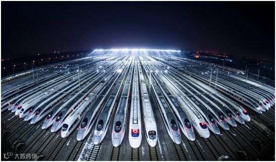 ▲ 2018年2月1日凌晨,动车组停靠在武汉动车段的存车线上,准备进行检修和保温作业。新华社记者 肖艺九 摄