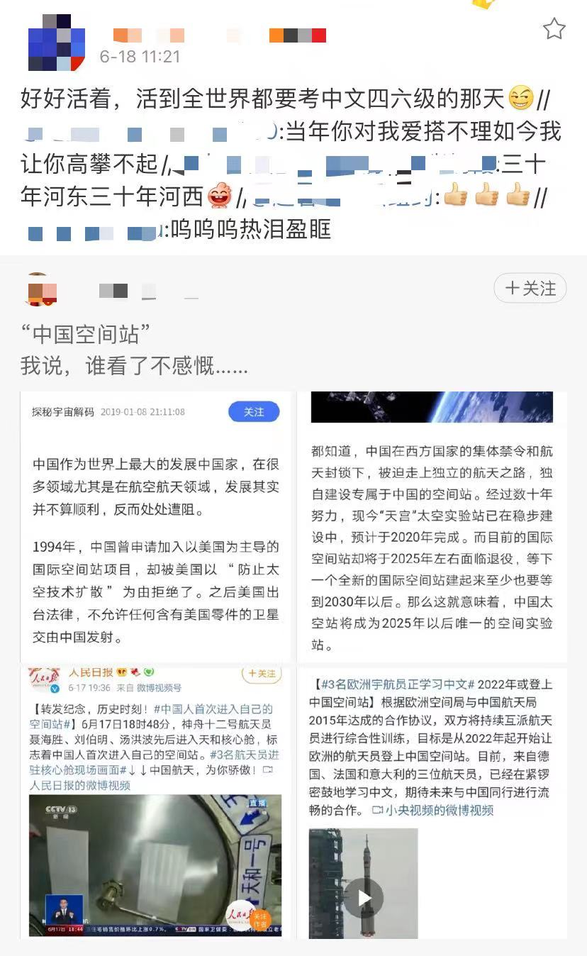 17日18时48分,神舟十二号航天员聂海胜、刘伯明、汤洪波先后进入天和核心舱,标志着中国人首次进入自己的空间站。亲眼见证这一历史性时刻,全网“沸”了。