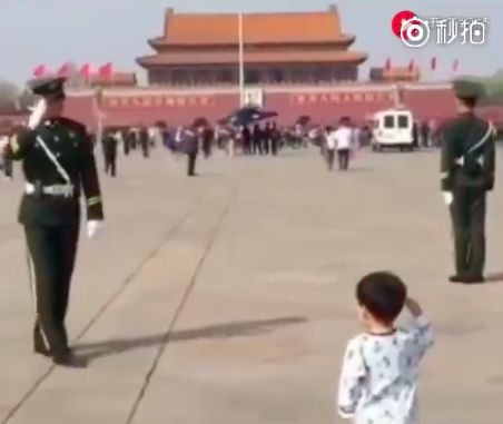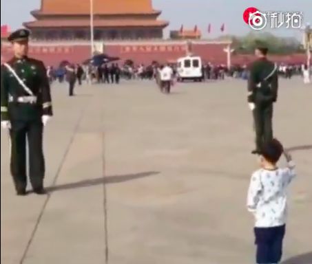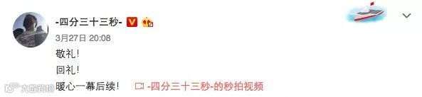 微博网友“@-四分三十三秒- ”晒出一段“敬礼回礼”的视频: