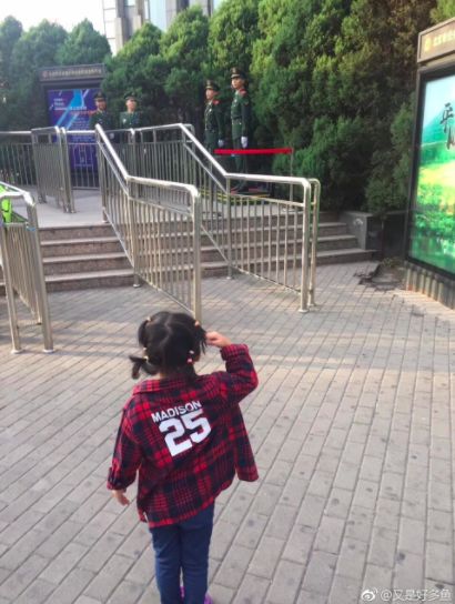 @_最强壮的肌肉是我的心_:有一次我站岗,有个小女孩给我敬礼,我也回了她一个