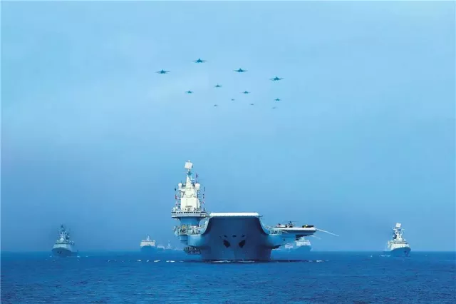 2018年4月12日,辽宁舰和多艘水面舰艇组成的航母打击群首次亮相,场面震撼。