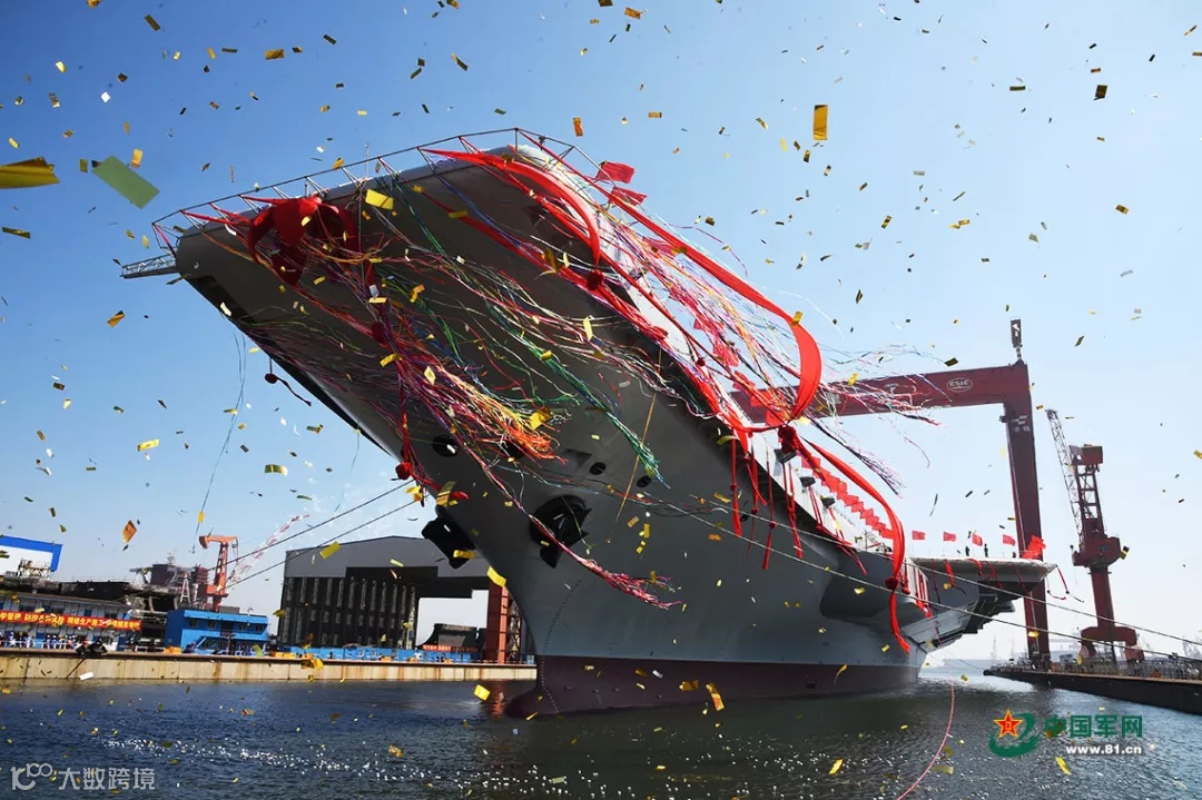 2017年4月26日,我国第二艘航空母舰下水仪式在中国船舶重工集团公司大连造船厂举行。图为航空母舰下水仪式现场。