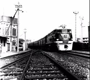 ▲1996年9月1日,我国八纵八横骨干铁路之一——京九铁路通车。图为京九线开通当天,从北京西站开出的京九线列车。