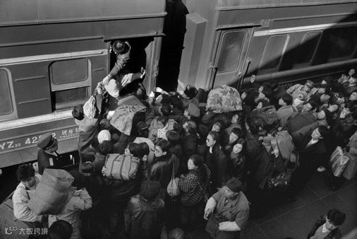 ▲1994年,哈尔滨火车站拥挤的人群。王福春摄