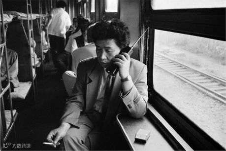 ▲1994年,在沈阳开往大连的卧铺车厢中,有乘客用起了“大哥大”。 王福春摄