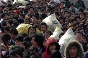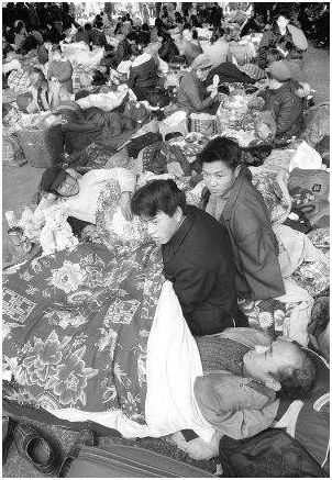 ▲1987年12月广州火车站因农民工激增而使大量旅客滞留。于文国 摄