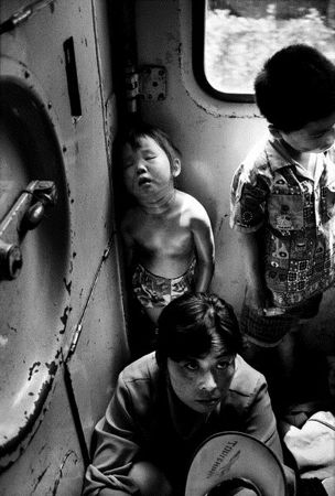 ▲1995年,在武汉到南宁的车上,一个小女孩站在车厢的一个角落里睡着了。王福春摄