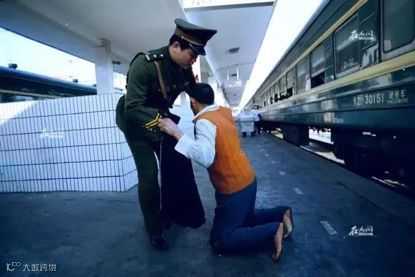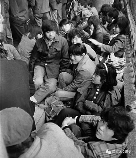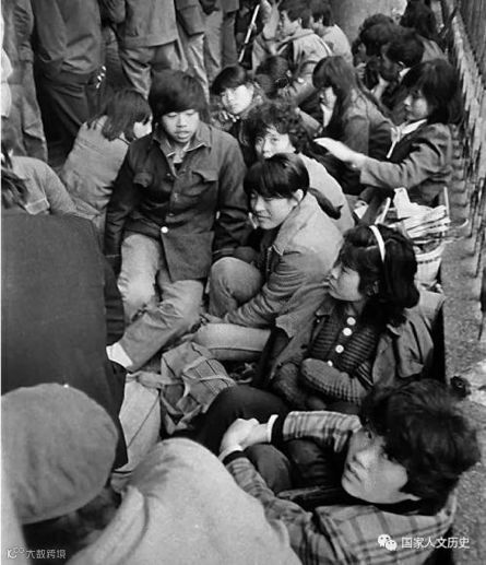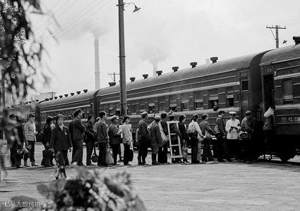 ▲1978年,旅客在哈尔滨三棵树火车站排队上车。