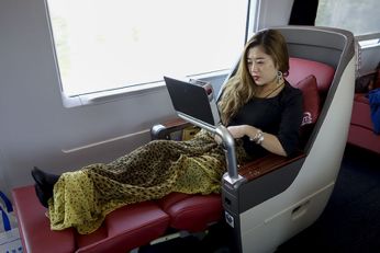 ▲2018年2月13日下午,在北京南开往上海虹桥的高铁上,三位素不相识的小朋友,在乘车过程中相互热情问候、玩耍。