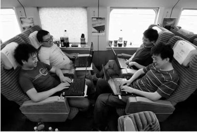 ▲1989年,从北京开往广州的列车上,旅客自带收录机在车厢里收听邓丽君的歌曲。王福春 摄