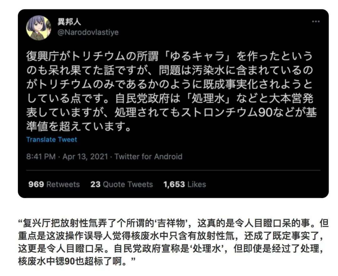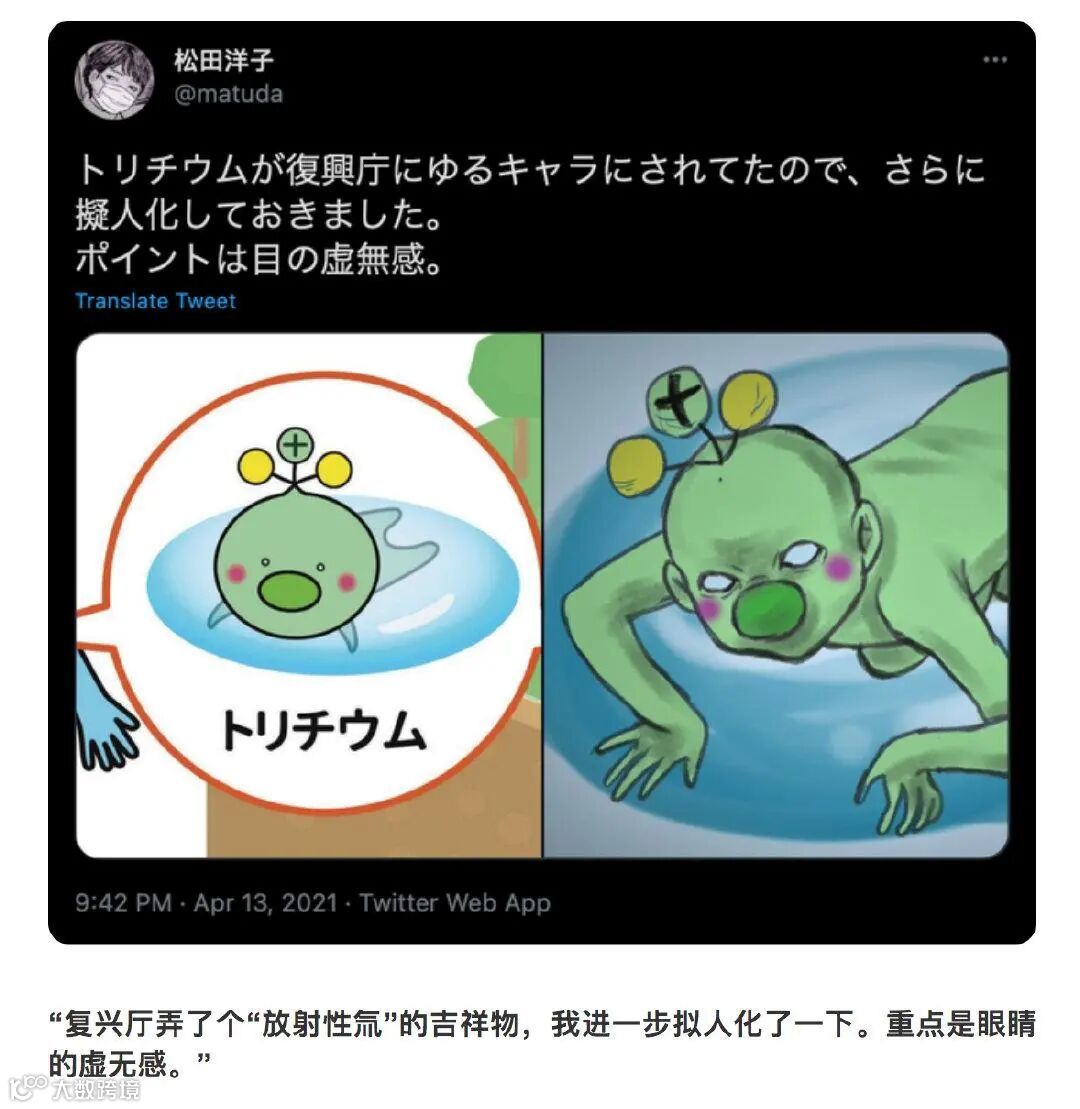 对此,日本网友评论称:“复兴厅弄了个‘放射性氚’的吉祥物,我进一步拟人化了一下。重点是眼睛的虚无感。”“这也太脑袋缺根筋了吧。核废水如果是安全的,那为什么要用水箱隔离?!这是想用吉祥物欺骗渔民吗?”↓↓↓