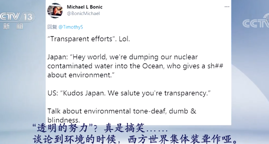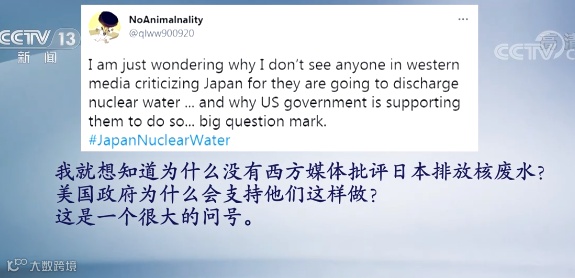我就想知道为什么没有西方媒体批评日本排放核废水?美国政府为什么会支持他们这样做?这是一个很大的问号。