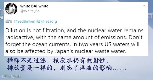 美国国务卿先生,世界上没有一个国家是孤岛,有一天,福岛核废水会污染全世界。