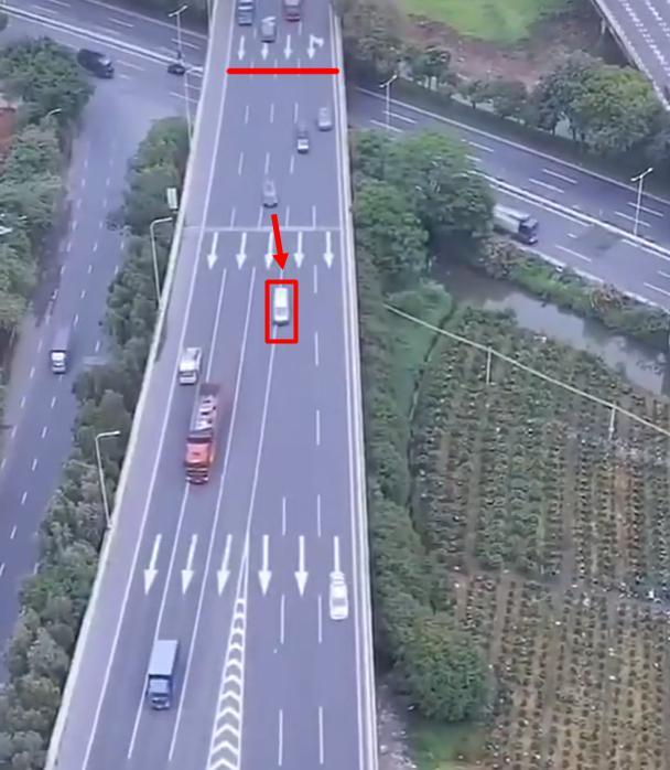 航拍画面显示,该路段为Y字型岔道口,由4车道变为最终的6车道,但只有一条车道可以直行通向左侧区域。
