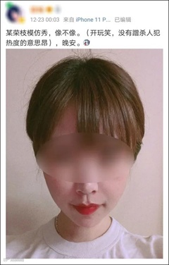 23日凌晨,某位粉丝数近7万的网红博主,晒出自己“精心”妆点的自拍照,配文“某荣枝模仿秀,像不像。”