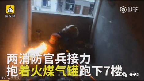 1、90后消防员抱着火煤气罐冲下7楼 湖北竹山县一居民家厨房着火,竹山消防中队两位消防官兵接力拎着煤气罐冲下了7楼。两位90后消防员表示,“有爆炸的可能,当时心里也怕,但是要拎下去”。(@梨视频)