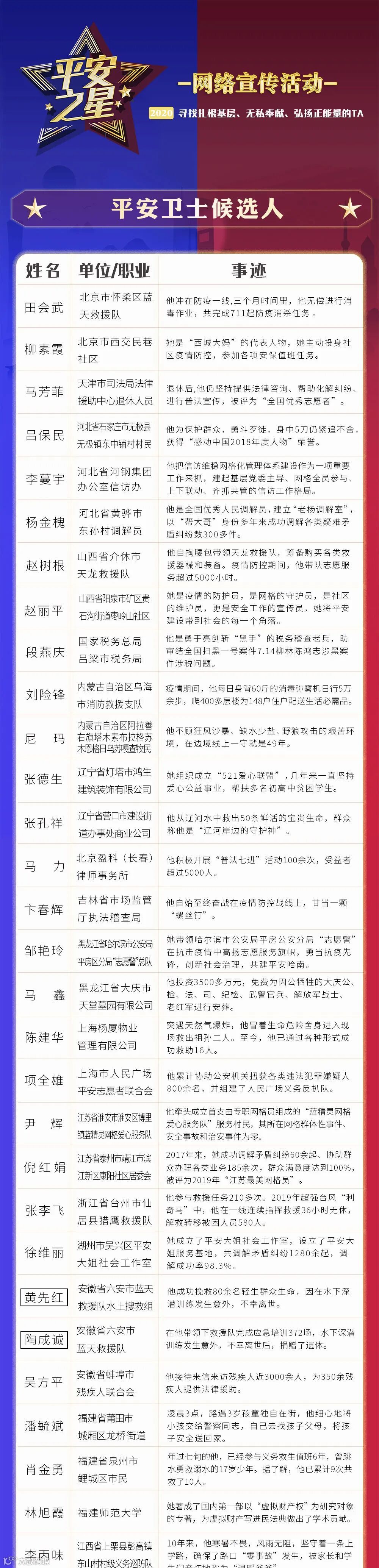 “平安之星”候选人名单