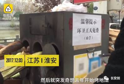 3、暖心!小伙辞职卖红薯,环卫工免费吃 去年冬天,江苏的小李下班途中看到环卫工冒着严寒扫街,想为他们做点事。于是他选择辞职烤红薯,免费提供给环卫工吃。他说,自己每天多卖两个小时就能把损失弥补回来:“出点微薄之力吧,如果以后条件好的话,会更多地回报给社会。”(@中国长安网)