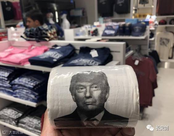 4、美商店推特朗普头像卫生纸,价格还不低…… 当地时间2017年12月2日,美国洛杉矶机场、一服装店别出心裁地把特朗普肖像印在衣服、杯子、面具等物品上面,而且还印在了卫生纸上,售价6.95美金,让大家无时无刻都在牢记着川普的形象。(环球网)