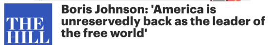 约翰逊送上了赞美。据美媒报道,约翰逊高度评价拜登政府,认为其让美国以“自由世界领袖”的身份回归,重塑西方世界的团结。