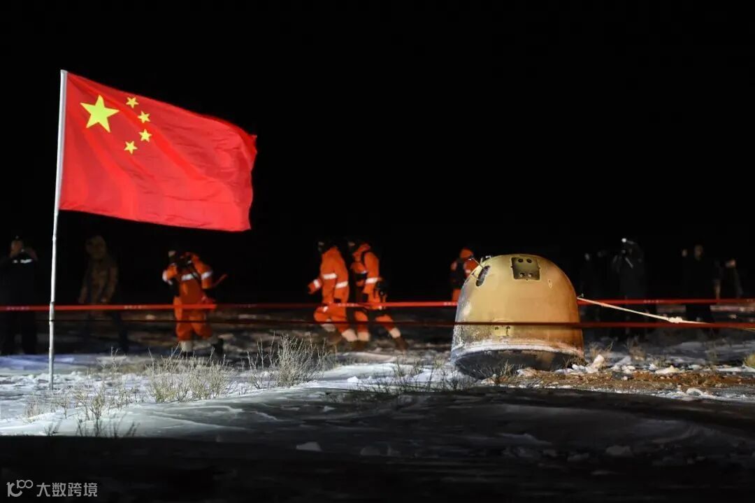 资料图片:2020年12月17日凌晨,嫦娥五号返回器携带月球样品,在内蒙古四子王旗预定区域安全着陆。(新华社)