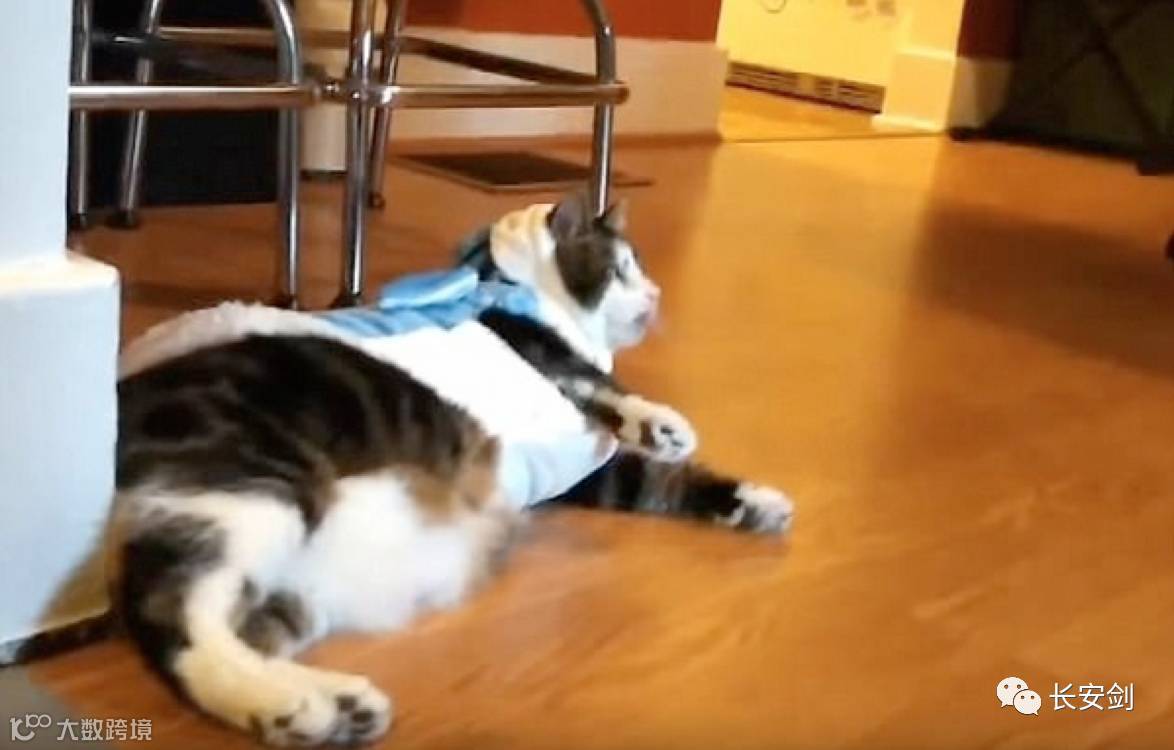 5、猫咪不喜穿万圣节服饰假装昏迷 英国一只名叫菲茨杰拉德的猫咪在万圣节不情愿地被主人穿上时髦的鲨鱼服饰,就在主人告诉它“你看起来很漂亮”的时候,它倒在了地上,假装昏迷。过了一会,它又坐了起来,发现身上仍然穿着不喜欢的服饰,显然对此十分失望。(环球网)
