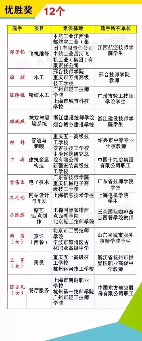 从奖牌榜名单看:获奖者大多是高校尤其是职业院校的学生、教师,还包括国企职工等。