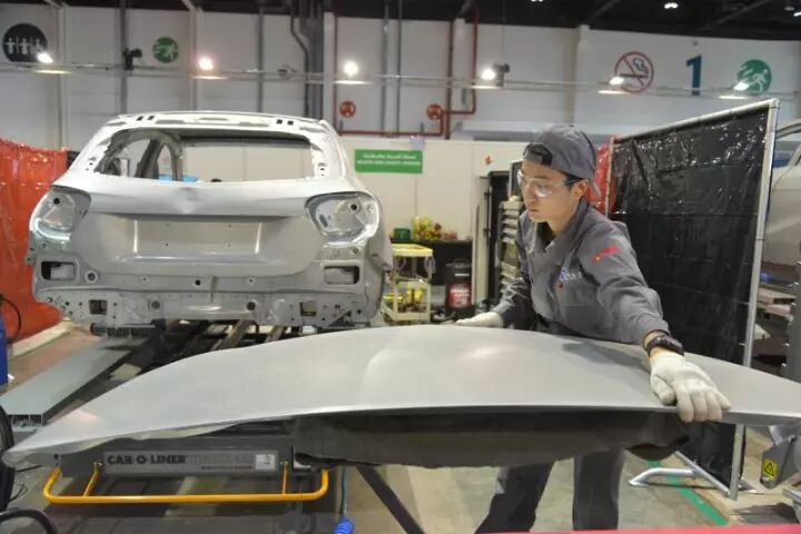 在车身修理项目中,中国选手杨山巍获得金牌。