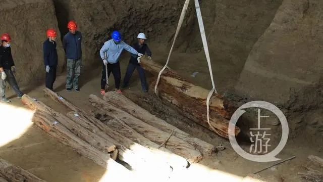 血渭一号大墓从上到下,每隔1米左右都用柏木横穿墓葬,相传共设9层,于是有了“九层妖楼”之称。