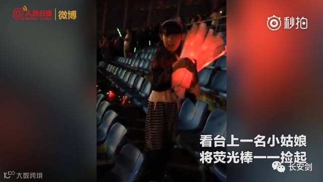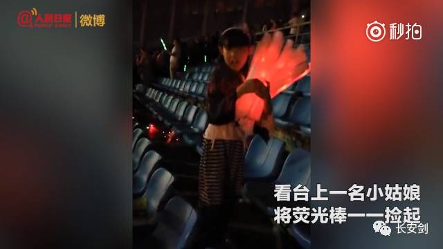 2、暖心!演唱会后小女孩收拾遗落荧光棒 近日,河北承德一场演唱会结束之后,大批观众向外走着,遗留下不少荧光棒。看台上一个小姑娘,将荧光棒从地上一支支捡起,抱在怀里整整一大把。网友:小天使!棒棒哒!(@人民日报)