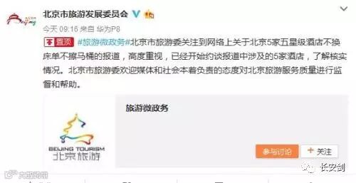 3、五星级酒店不换床单不擦马桶?北京旅游委约谈5家酒店 北京市旅游委关注到网络上关于北京5家五星级酒店不换床单不擦马桶的报道,高度重视,已经开始约谈报道中涉及的5家酒店,了解核实情况。(@北京市旅游发展委员会)