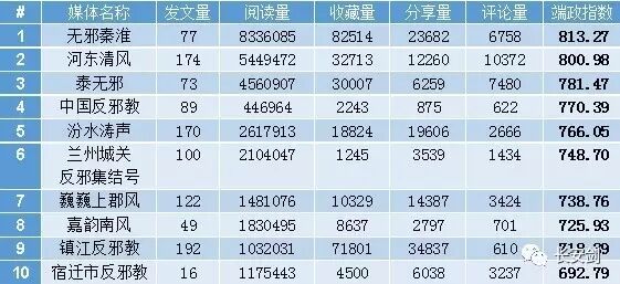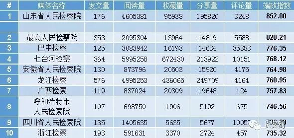 注:本榜单依据“端政指数”进行排名,2017年为打击抄袭,鼓励原创,“端政指数”提高了文章原创度所占比重。