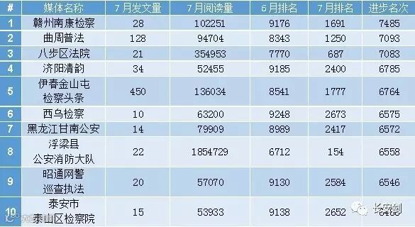观榜指南:7月,26000余个政法头条号共发布了20.44万篇文章,其中807篇阅读量突破10万+,47篇阅读量突破100万+。本榜单主要以阅读量和原创性为选择标准,同时考虑传播的覆盖率进行评选。