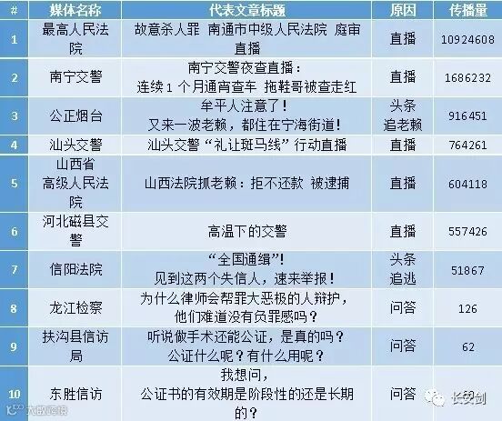 观榜指南:本榜单根据各政法头条号申报的在头条号平台上进行新技术应用案例,结合其传播效果综合评定。每期名额为0-10个单位,排名不分先后。2017年上半年10个名额分布为:直播,5个;问答,3个;其他(例如利用头条追逃),2个。单项名额不足时,由其他单项补齐。