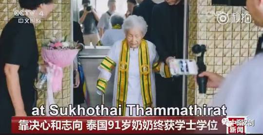 4、靠决心和志向 泰国91岁奶奶获学士学位 俗话说:活到老,学到老。泰国一位91岁的老奶奶经过10多年的拼搏,终获学士学位。老奶奶学的是人类生态学,她称,这个专业可以教会自己如何度过美好快乐的人生!老奶奶还称,是决心和志向让她能够走得这么远。(中国新闻网)