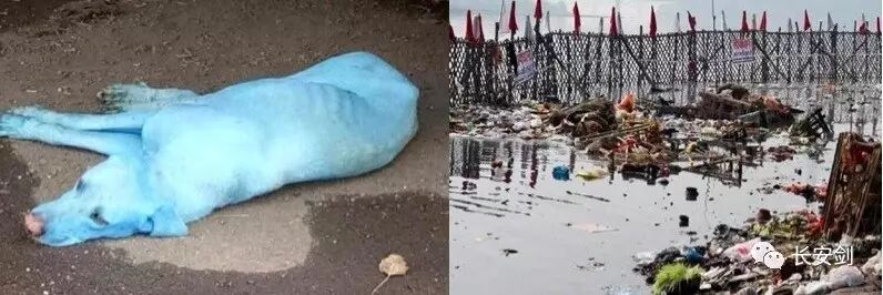 2、水污染严重印度惊现蓝色狗 近日,印度新孟买市接连出现浑身发蓝的狗。当地动物保护组织称,小狗“变色”的原因可能是喝了工厂排到河里的废水。印度媒体称,新孟买市有近1000家食品和药品工厂。来自当地水污染检测机构的水质报告显示,新孟买市污水净化不达标,可能影响人类健康。(成都商报)