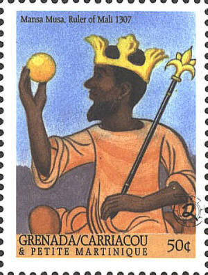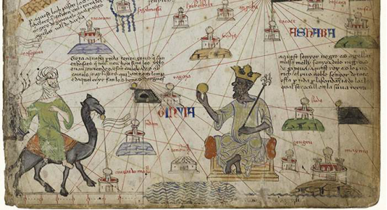 欧洲中世纪《加泰罗尼亚地图集》,直接把穆萨手持黄金的形象标注在马里的位置。