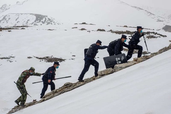 冬季上山巡逻,最能考验民警的体能:一趟需要7小时。每当有新队员加入,李军飞都要带他上一趟海拔3800米的莫斯吾冰达坂。