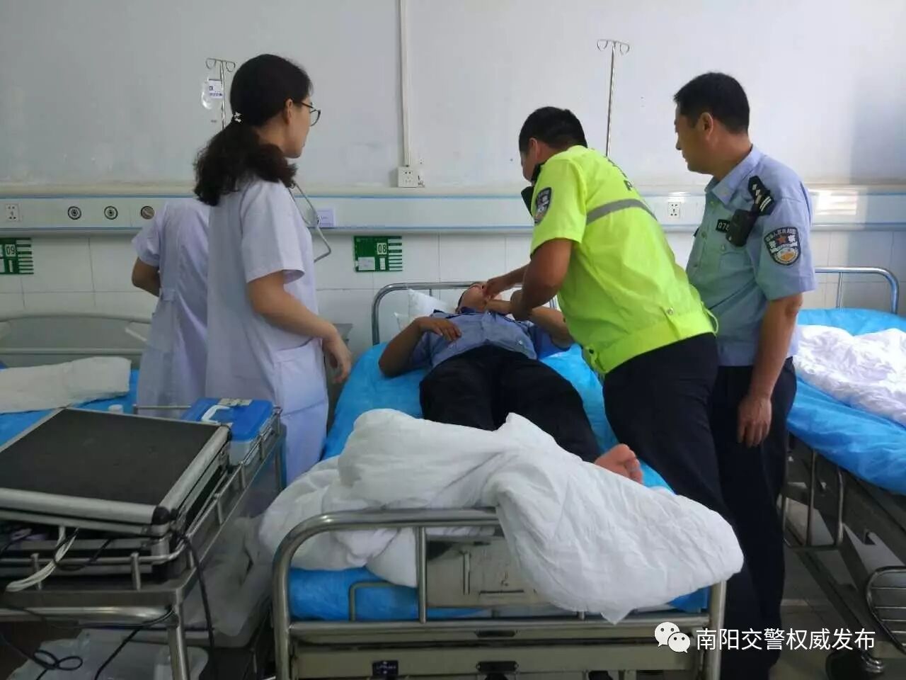 7月23日上午9时许,在南阳市工业路与八一路交叉口,一名警员在指挥疏导车辆时,突然晕倒,多名市民群众纷纷上前救助。