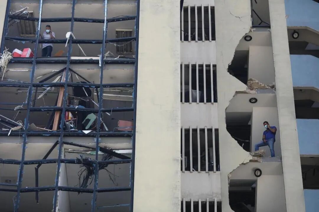 这是8月5日在黎巴嫩首都贝鲁特拍摄的在爆炸中受损的建筑物。新华社发(比拉尔·贾维希摄)